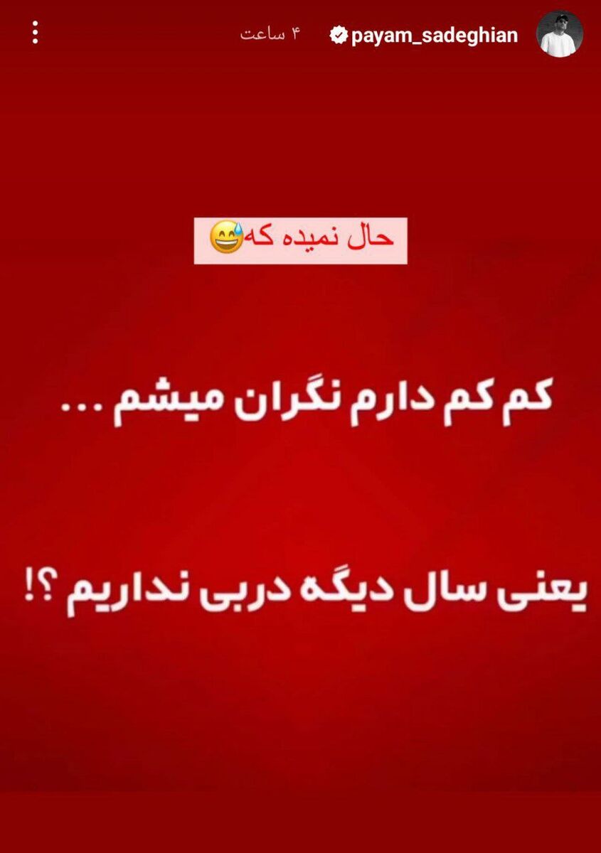 اکنون ز ستاره سابق پرسپولیس با انتشار پیامی در صفحه شخصی اینستاگرامش به شکست استقلال واکنش کنایهآمیزی نشان داد و نوشت: «کم کم دارم نگران میشم...یعنی سال دیگه دربی نداریم».