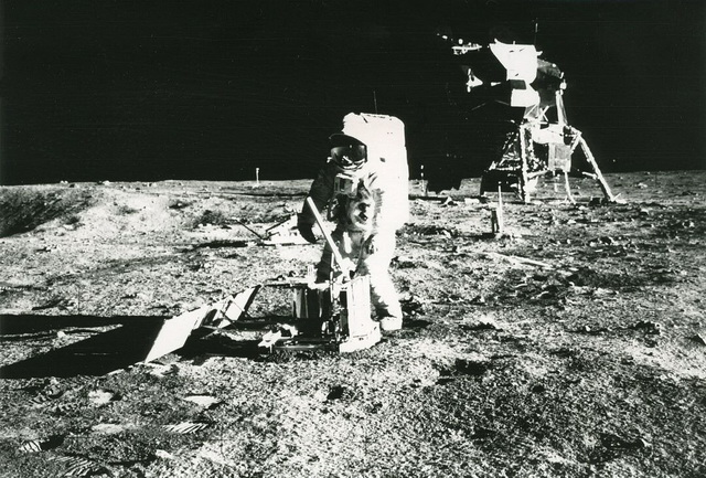 در اولین عکسی که نیل آرمسترانگ از روی ماه گرفته است، یکی از این کیسههای زباله به چشم میخورد.