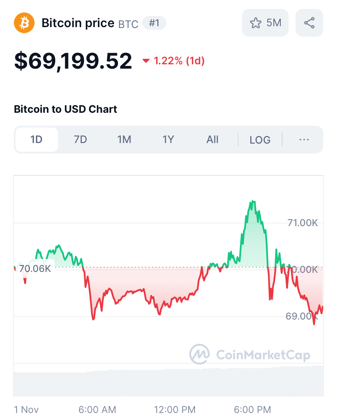 به گزارش سیتنا، قیمت بیت کوین با کاهشی ۴ درصدی، از سطح ۷۲,۵۰۰ دلار به محدوده ۶۹,۰۰۰ دلار بازگشت.