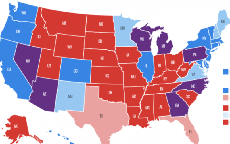 کمپین ترامپ بر سه ایالت جورجیا، کارولینای شمالی و پنسیلوانیا تمرکز دارد. او در جورجیا اندکی پیشتاز است و اگر بتواند حمایت رایدهندگان سیاهپوست را جلب کند، شانس بیشتری خواهد داشت.