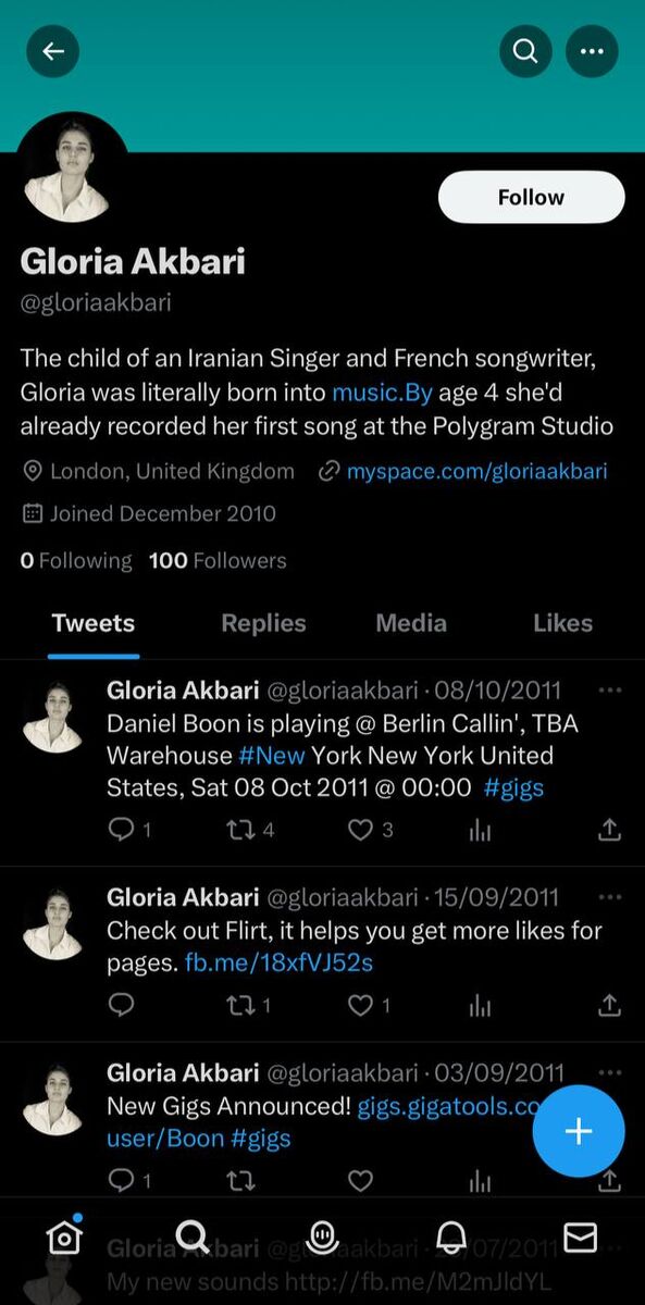 البته که گلوریا هاردی در یک توییت قدیمی ادعا کرده بود از کودکی تحت تاثیر سازهای سنتی قرار گرفته و عاشق موسیقی ایرانی شده که با ادعای خارجی بودن پدرش و ایرانی بودن مادرش جور در نمی آید و به نظر نقش این دو نفر، جا به جا شده است! در نگاه اول، به نظر می رسد همسر بازیگر معروف سینما قصد داشته به نوعی از گذشته خودش فرار کند و احتمالا رمز اکانت توییترش را فراموش کرده و حالا پس از چندین سال، ابعاد جدیدی از ماجرا رسانه ای شده است. مگر اینکه خود گلوریا هاردی یا علی اکبری با دلایل محکمه پسند، این ادعا را تکذیب کنند. اما به نظر این ادعا قابل تکذیب نیست چرا که در یک توییت قدیمیف گلوریا علی اکبری که حالا دوست دارد گلوریا هاردی نامیده شود، گفته بود پدرم شعبده باز و تردست بود و در 5 سالگی از طریق او با جادو.ی موسیقی آشنا شدم!