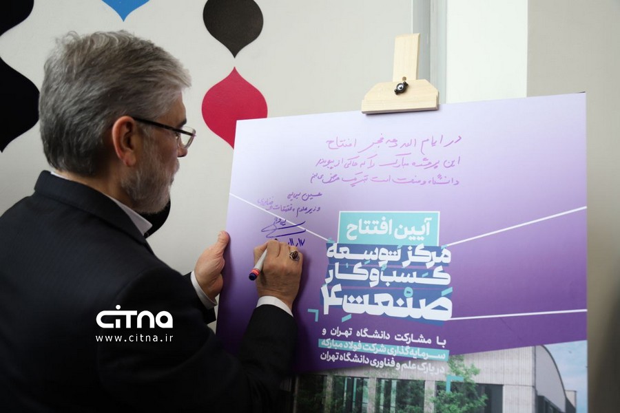 آیین افتتاح مرکز توسعه کسبوکار «صنعت ۴» با حضور وزیر علوم، تحقیقات و فناوری و با همکاری و مشارکت دانشگاه تهران و سرمایهگذاری شرکت فولاد مبارکه اصفهان و صندوق پژوهش و فناوری غیردولتی فولاد مبارکه اصفهان در محل پارک علم و فناوری دانشگاه تهران برگزار شد.