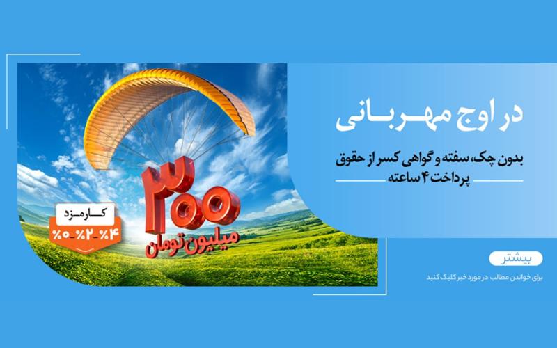 «طرح مهربانی ملی» این امکان را فراهم کرده است که متقاضیان دریافت وام قرضالحسنه تا سقف ۳ میلیارد ریال، تسهیلاتی با نرخ کارمزد انتخابی ۰، ۲ و یا ۴ درصد دریافت کنند.