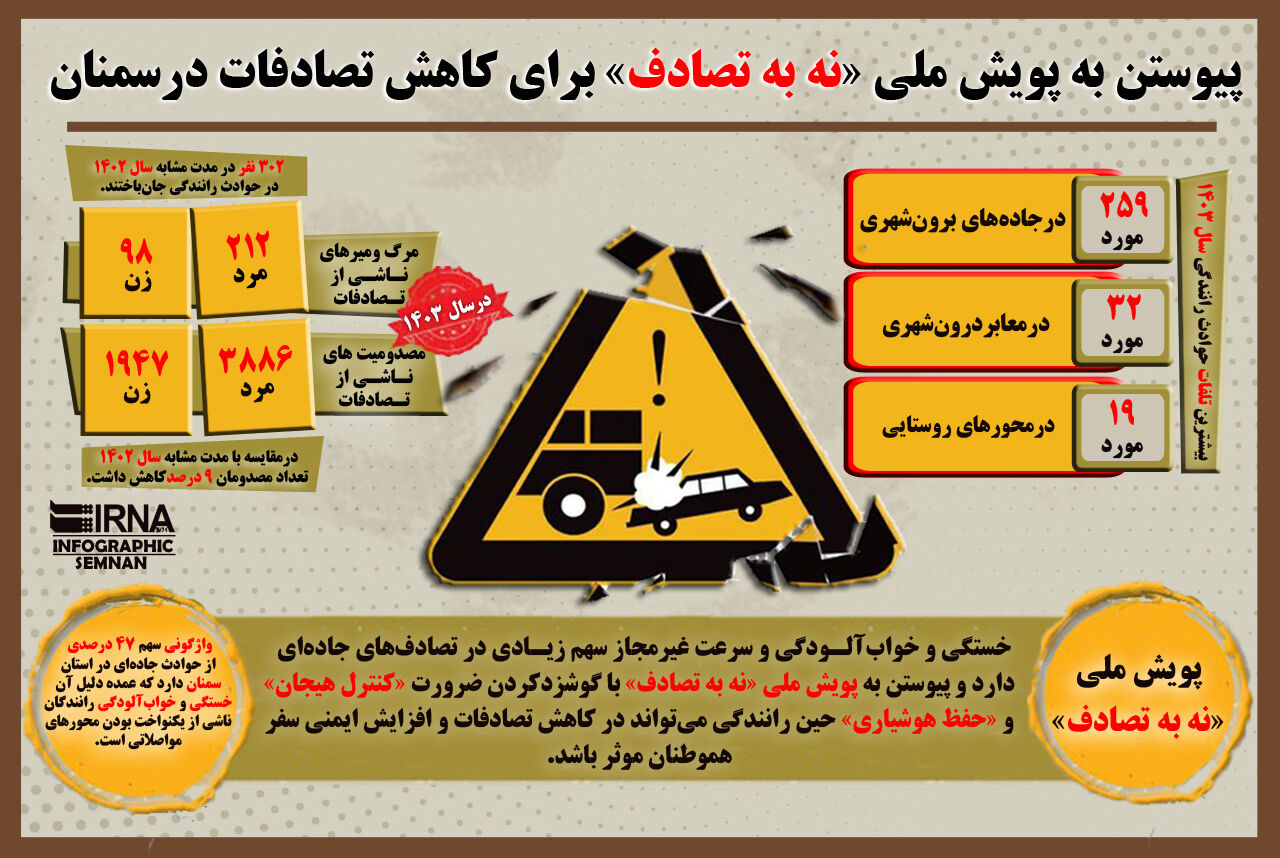 اینفوگرافیک پیوستن به پویش ملی نه به تصادف برای کاهش تصادفات در سمنان را ببینید.