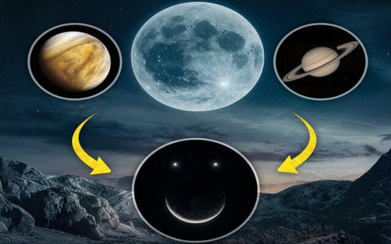 مقارنه سه گانه نادری از ماه، زحل و زهره در آسمان شب ۲۵ آوریل (پنجم اردیبهشت) باعث تشکیل یک صورتک خندان می شود.