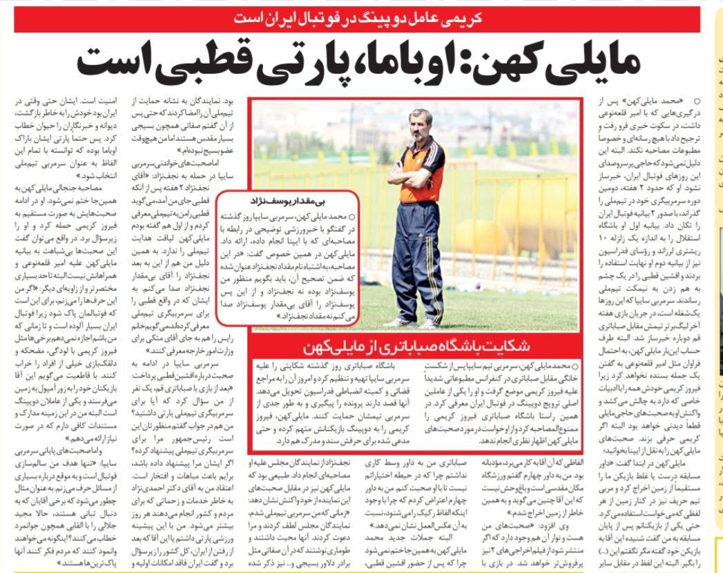 حاجی مایلی هشتم اردیبهشت همان سال طی مصاحبهای جنجالی به این ماجرا واکنش نشان داد و البته حرفهایی دیگری هم بر زبان آورد که زمینه برای تقابل او با فیروز کریمی سرمربی وقت صباباتری را در پی داشت. خلاصه حرفهای مایلی کهن را به اتفاق یکدیگر مرور میکنیم: