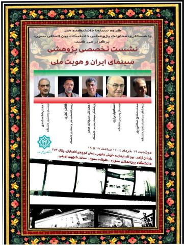 گروه سینما دانشکده هنر دانشگاه بینالمللی سوره با همکاری معاونت پژوهشی این دانشگاه، نشست تخصصی پژوهشی با عنوان "سینمای ایران و هویت ملی" برگزار میکند.