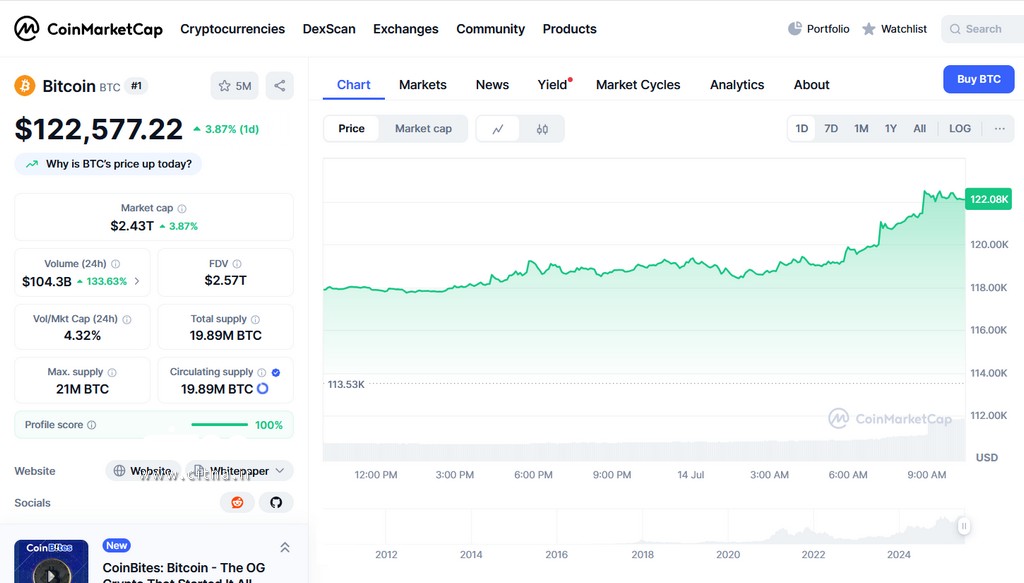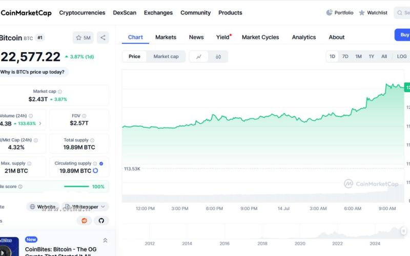 قیمت بیتکوین رکوردشکنی جدیدی داشته و برای اولین بار در تاریخ این رمزارز، از مرز 122 هزار دلار عبور کرده است.