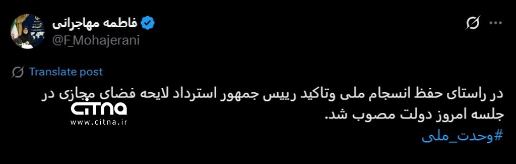 به گزارش سیتنا، فاطمه مهاجرانی در پستی در ایکس نوشت: