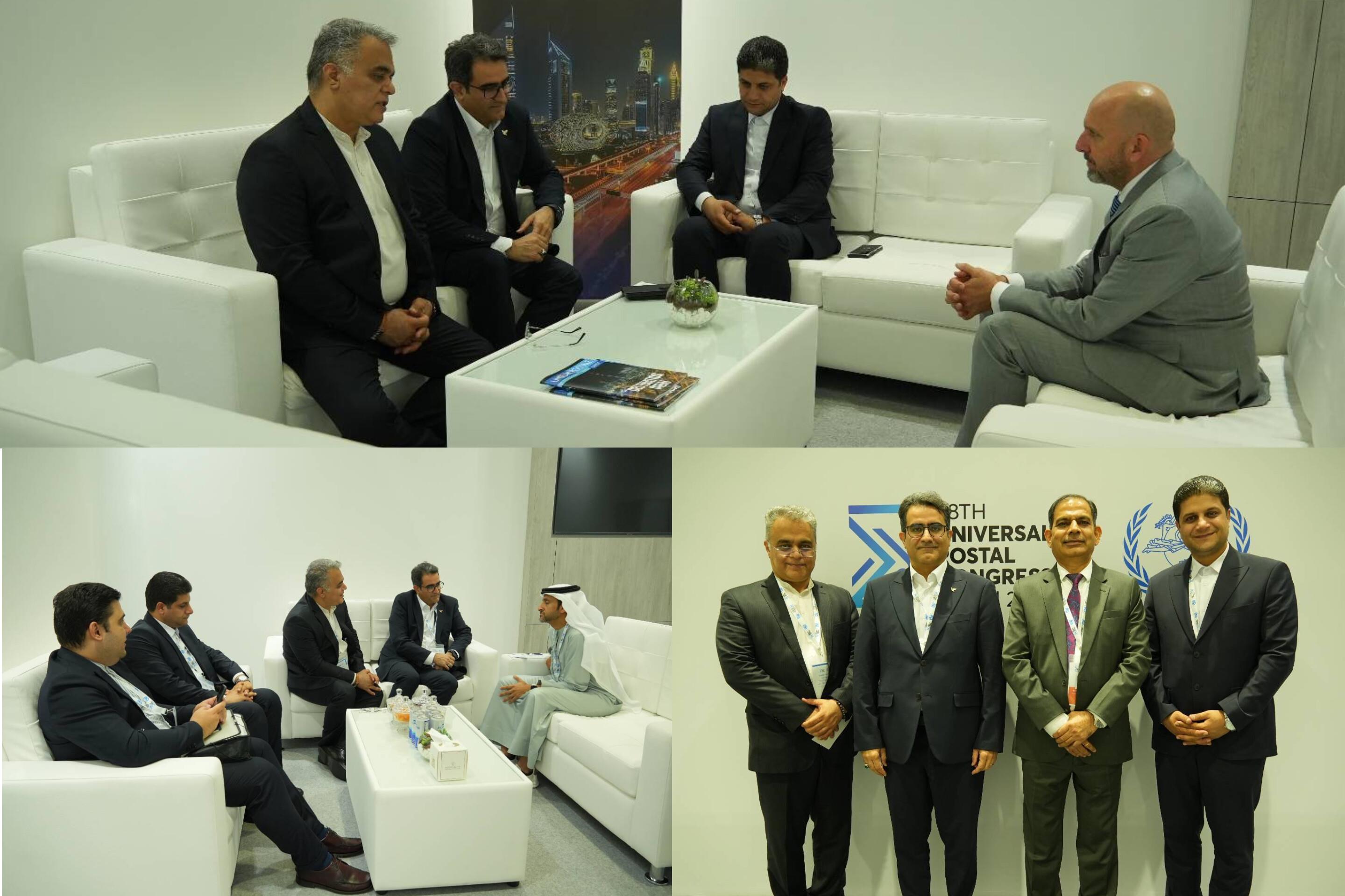 معاون وزیر ارتباطات و مدیرعامل شرکت ملی پست، در حاشیه بیستوهشتمین کنگره اتحادیه جهانی پست در دبی با مدیران عالیرتبه پست امارات، اتحادیه جهانی پست و اتحادیه پستی آسیا و اقیانوسیه (APPU) دیدار و درباره راههای گسترش همکاریهای مشترک گفتوگو کرد.