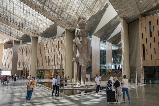 به گزار سیتنا، «موزه بزرگ مصر» در اکتبر ۲۰۲۴ بهطور آزمایشی افتتاح شد و ۱۲ گالری آن به روی عموم گشوده شد. اما آثار شاخص و ستارههای اصلی آن، از جمله قایق باشکوه و دستنخورده «خوفو» و هزاران گنجینه از مقبره فرعون «توتعنخآمون» تا پیش از مراسم افتتاح رسمی در اول نوامبر، بهطور کامل از دید عموم پنهان مانده بودند. بازدیدکنندگان میتوانند انتظار دیدن آثار کمتر شناختهشدهای از مقبره فرعون را داشته باشند که بینش جدیدی از زندگی او را ارائه میدهند. در میان این مجموعه، دو مجسمه عظیم از یک شاه و ملکه دودمان بطلمیوسی قابلتوجهترین این آثار به شمار میآیند.