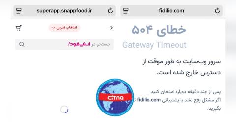 اسنپ فود در حال لود شدن است و امکان سفارش در این پلتفرم میسر نیست، و زمان مراجعه به دیگر پلتفرم سفارش آنلاین غذا یعنی فیدیلیو هم پیغام سرور از دسترس خارج است مشاهده می شود.