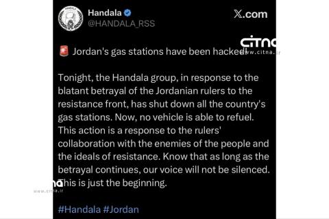 گروه هکری «حنظله» با انتشار بیانیه‌ای مدعی شد در اقدامی سایبری، سامانه‌های مرتبط با جایگاه‌های سوخت در اردن را هدف قرار داده و موجب اختلال گسترده در فرآیند سوخت‌گیری شده است؛ ادعایی که تاکنون از سوی منابع رسمی این کشور تأیید نشده است.