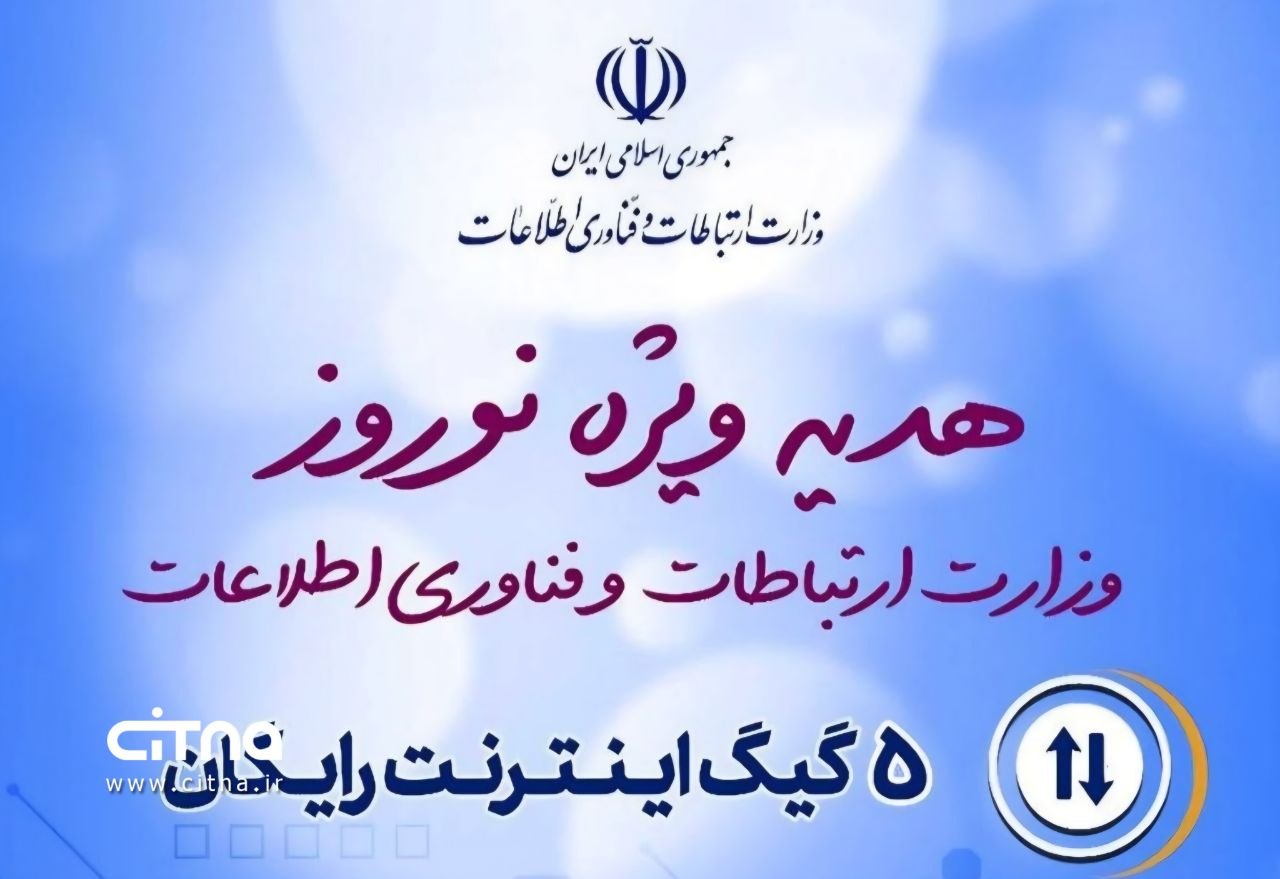 وزارت ارتباطات و فناوری اطلاعات از ارائه بسته ویژه نوروزی برای کاربران خبر داد که بر اساس آن، ۵ گیگ اینترنت رایگان به همراه دسترسی رایگان به محتوای برخی پلتفرمهای نمایش آنلاین در اختیار کاربران قرار میگیرد.