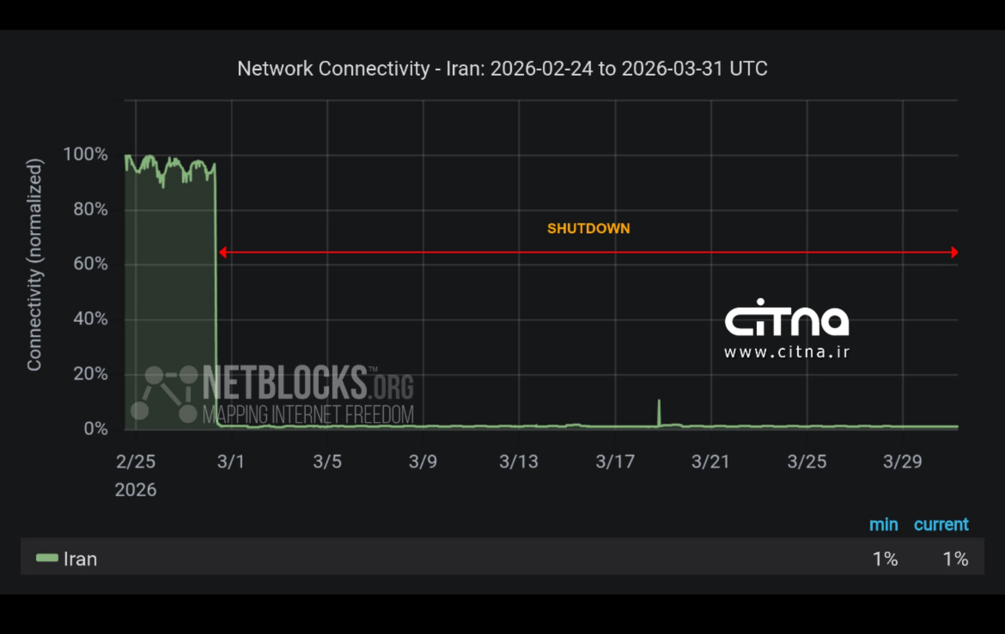 به گزارش سیتنا، نتبلاکس اعلام کرد که قطعی اینترنت در ایران وارد سیودومین روز خود شده و بخش عمدهای از کاربران همچنان دسترسی خود به اینترنت بینالملل را از دست دادهاند.