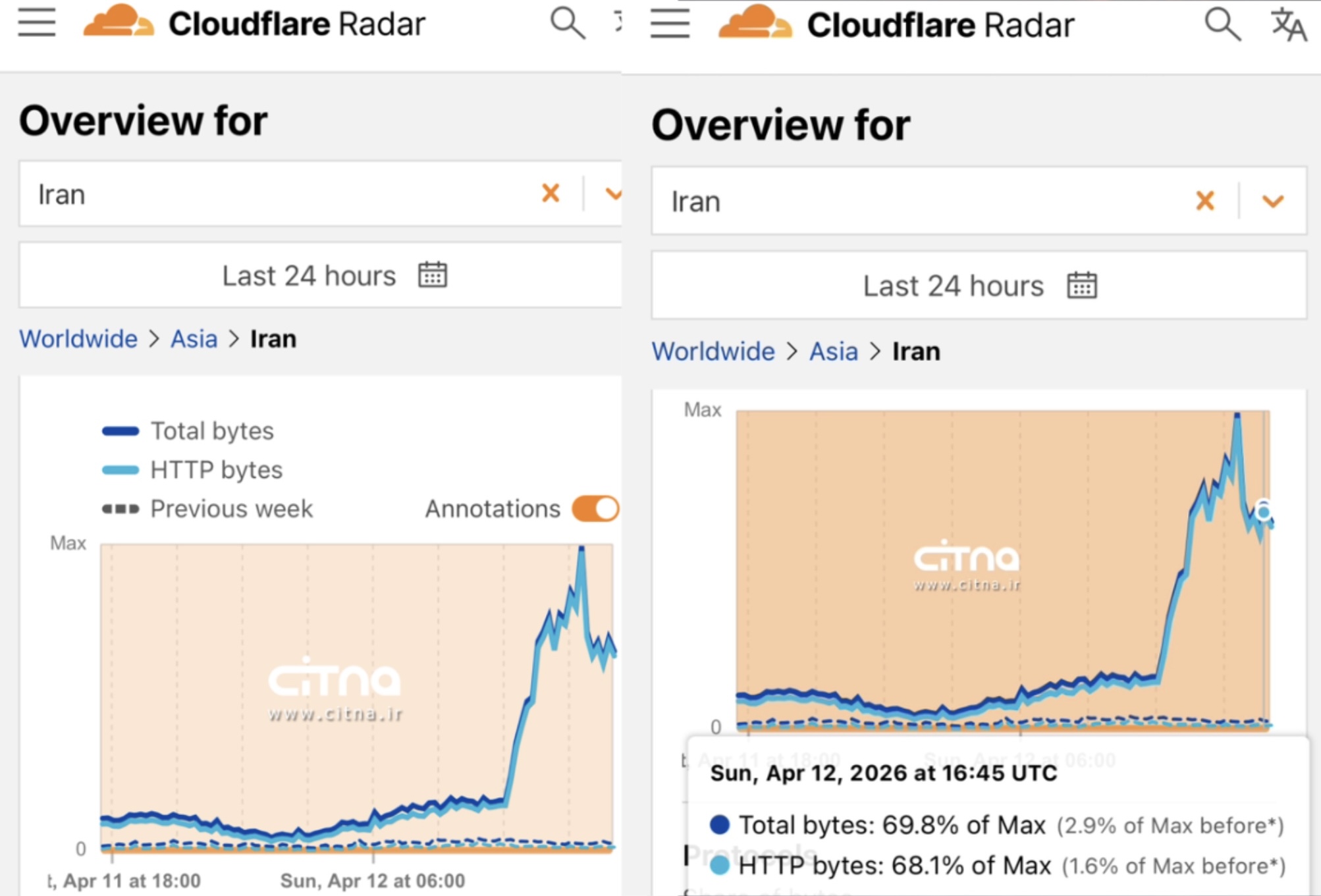 به استناد نمودار کلودفلر: حجم ترافیک اینترنت ایران از عصر یکشنبه با جهش قابل توجهی مواجه شده است