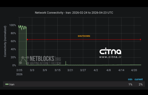 نت بلاکس اعلام کرد: دسترسی به اینترنت در ایران به حدود ۲ درصد سطح عادی سقوط کرده و این قطعی پس از ۱۲۹۶ ساعت همچنان ادامه دارد.