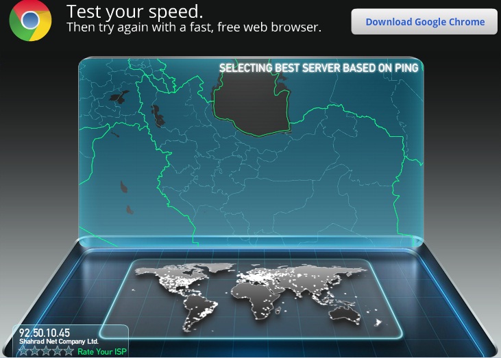 بر اساس جدولی که سرعت اینترنت در کشورهای مختلف جهان را از 20 فوریه 2010 تا 21 آگوست 2012 مورد ارزیابی قرار داده است، ایران با سرعت اینترنت Mbps 1.43 و سقوط دیگربار در این جدول در جایگاه 164 ام قرار گرفته است.
