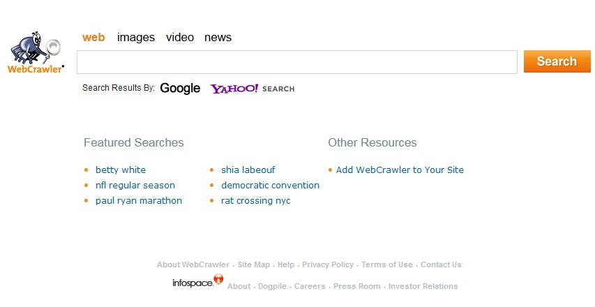 اولین موتور جستجوی کامل و حقیقی که از یک ربات خزنده ی کامل، جهت فهرست کردن و جستجوی کل یک صفحه ی وب بهره می برد WebCrawler نام داشت.