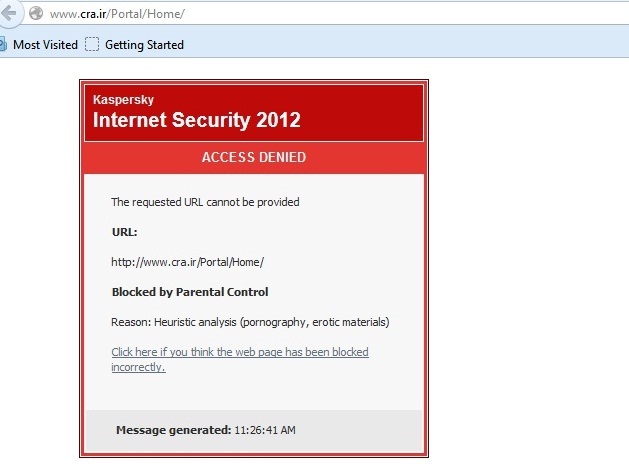 در مراجعه به این سایت با پیغام ذیل بر روی صفحهی اصلی سایت مواجه میشوید.