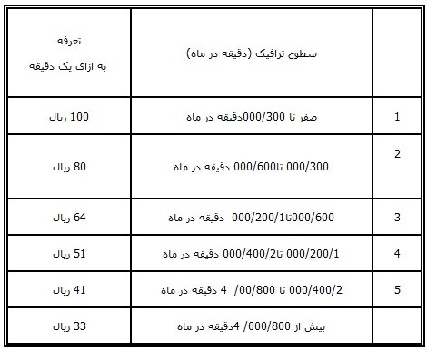 مهندس سلمان در ادامه تصریح کرد: مازاد ترافیک هر سطح با سطح بعدی سنجیده می شود. به عنوان نمونه اگر یک شرکت 700 هزار دقیقه در ماه ترافیک صادره VoIP داشته باشد 300 هزار دقیقه در ماه با دقیقهای 100 ریال، مازاد 300 هزار الی 600 هزار دقیقه با دقیقهای 80 ریال و مازاد 600 هزار الی 700 هزار دقیقه با هر دقیقه 64 ریال محاسبه میشود.