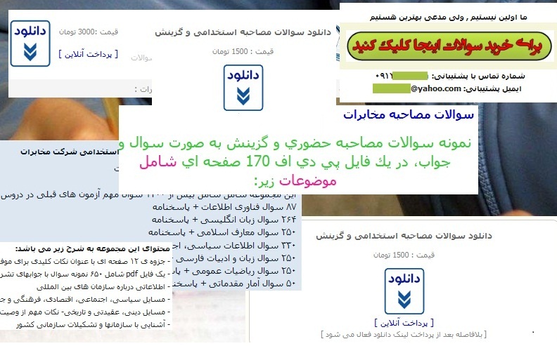 گفتنی است برخی سایتها که ادعا میکنند سوالات اصلی مصاحبهی استخدامی مخابرات را در اختیار دارند (!)، آن را به قیمت بالاتر از 1500 تومان هم میفروشند.