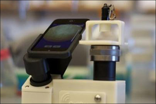 پژوهشگران تلفن های هوشمند را بگونه ای به بزرگنمای اوپتیکی متصل کرده اند که می تواند به یک میکروسکوپ تشخیصی برای استفاده در درمانگاه ها در کشورهای در حال توسعه به کار گرفته شود.