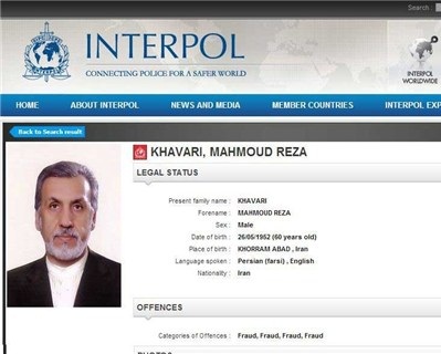 بنا به این گزارش، اخیرا و به تازگی عکس و نام محمود خاوری در سایت پلیس بین الملل با ذکر چهار بار کلمه کلاهبرداری(fraud) منتشر شده است. بنا به قوانین اینترپل مقامات قضایی و پلیس تمامی کشورها موظف هستند به محض رویت متهم، وی را دستگیر و در اختیار پلیس بین الملل قرار دهند.