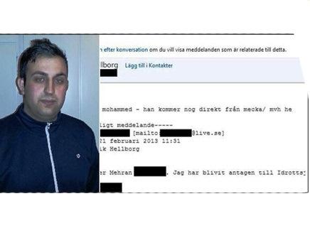 به گزارش سیتنا به نقل از العربیه، "مهران محمودی" دانشجوی ۲۳ ساله ایرانی دانشگاه اپسالا که برای گذراندن یک واحد درسی در رشته ''حقوق ورزشی'' دانشگاه ''دالارنا'' پذیرفته شده بود، به منظور اطلاع از نحوه ثبت نام، با این دانشگاه توسط ایمیل مکاتبه کرد.