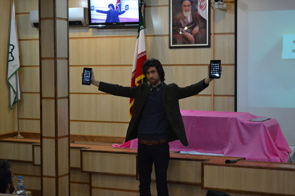 خزایی به میان جمع آمد و گفت: ممکن است به یکباره تمامی تجهیزات ارائه از دسترس خارج شود اما ارائه نباید روی زمین بماند و از این جهت پروژکتور تبلت میتواند یکی از گزینههای خوب برای ادامه ارائه در شرایط سخت باشد و در این زمان بود که تشویقهای مکرر حضار فضای سالن را در بر گرفت.