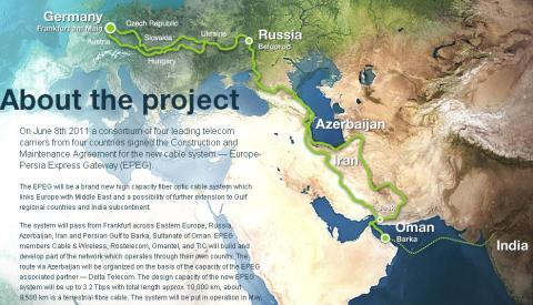 پروژهی مخابراتی بزرگراه ارتباطی ایران - اروپا (EPEG) که از آن به عنوان برند جدید اتصال اروپا و خاورمیانه یاد میشود با شروع از فرانکفورت آلمان و گذر از کشورهای مجارستان، جمهوری چک و اوکراین به روسیه رسیده و سپس با گذر از خاک ایران و امارات به عمان میرسد.