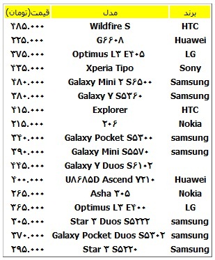 قیمتروز موبایلهای محبوب زیر ۵۰۰ هزار تومان در بازار به شرح زیر است: