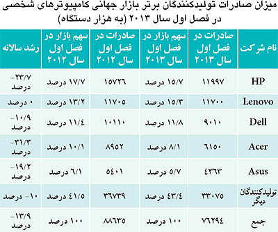 آمار و گزارشهای منتشر شده از طرف موسسه تحقیقاتی Gartner هم با اختلاف کمی این موضوع را تایید میکند و نشان میدهد که صادرات جهانی کامپیوترهای شخصی در این فصل با کاهش سالانه 11 درصدی همراه بوده که این اختلاف کم به دنبال تفاوت روش تحقیق این دو موسسه بوده است. البته این اتفاق چندان هم دور از انتظار نبود و بسیاری از کارشناسان و تحلیلگران صنعت PC بارها آن را پیشبینی کرده بودند. در حقیقت بازار کامپیوترهای شخصی رقابت را به دستگاههای دیجیتال قابل حملی مانند موبایلهای هوشمند و تبلتها باخته است.