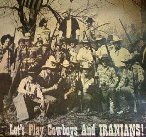 همچنین در زیر این پوستر نوشته شده است: بیایید بازی کابویی ها و ایرانی ها را بکنیم. در این پوستر توهین آمیز، یکی از افراد لباسی پوشیده است که بر روی آن نوشته است: ایرانی ها مزخرف هستند.