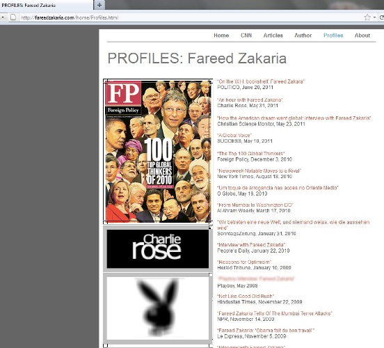 به گزارش سیتنا، از سایت این باشگاه خبری، فرید زکریا مجری هندی تبار شبکه خبری سی ان ان که چندی پیش به بهانه گفنگوی اختصاصی با رئیس جمهور به ایران آمده بود و ماجراهای چگونگی حضور، میزبانی و محل استقرار وی جنجال فراوانی در رسانه های ایرانی داشت، در صفحه پروفایل سایت شخصی اش با قرار دادن لوگو و لینک شبکه مستهجن "پ ب" به تبلیغ این شبکه مستهجن پرداخته است.