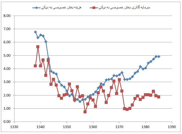روند نسبت سرمایه گذاری بخش خصوصی به دولت پس از جنگ