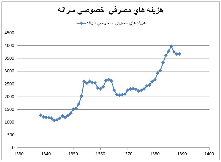تاثیر اقتصادی این سیاست بر زندگی مردم را می توان در هزینه بخش خصوصی مشاهده کرد. هزینه سرانه بخش خصوصی در سال 86 که هنوز تحت تاثیر روند گذشته مانده بود به بیش از یک و نیم برابر هزینه سرانه در سال 56 رسید و مردم از رفاه نسبی برخوردار شدند که البته از سال 86 به بعد هزینه سرانه رو به کاهش گذارد. (نمودار 7)