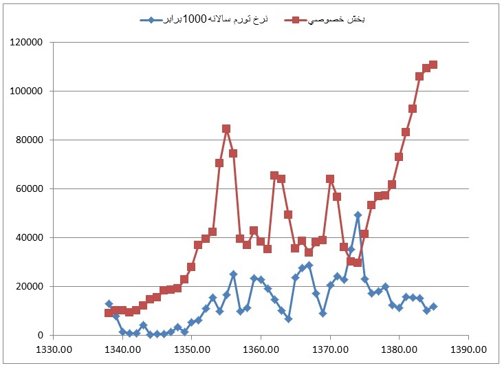 افزایش تورم در پی کاهش نسبت سرمایه گذاری بخش خصوصی در دهه 50