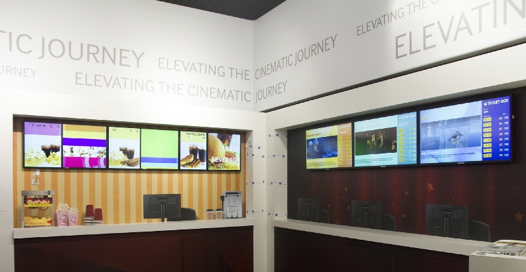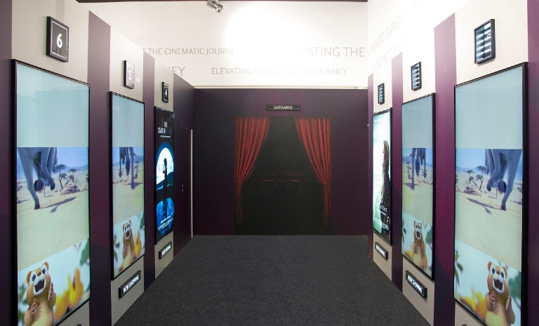 منتهی این تجربه ای متفاوت است. در باجه بلیط بازدیدکنندگان بلیط خود را از طریق صفحه لمسی (touchscreen) خریداری می کنند. از اینجا به بعد در کوریدورهایی که به سالن سینما ختم می شوند، بازدیدکنندگان می توانند پیش پرده فیلم های آینده را روی LFDهای خیره کننده تماشا کنند. علاوه براین، LFDهایی نیز در فضای بیرون از سینما نصب شده اند که در مقابل هر نوع وضعیت هوا مقاومند.