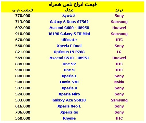 قیمت 20 مدل و برند برتر گوشی های 500 هزار تا یک میلیون تومانی موجود در بازار بر اساس میزان محبوبیت به شرح زیر است؛