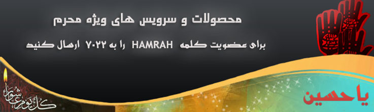 به منظور عضویت در سرویس "همراهان حسین" مشترکان کافیاست عبارت HAMRAH را به شماره 7022 ارسال کنند تا به عضویت سرویسهای ویژه محرم شامل خیمه عشق، نی نوا، حرم حبیب، با کاروان کربلا، از دیار آزادگی، احادیث و اخبار محرم درآیند.