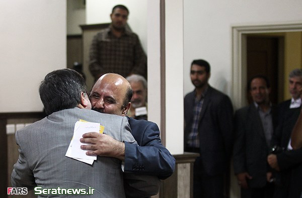 دیدار وزیر فرهنگ و ارشاد اسلامی با اهالی شعر و ادب/ سهیل محمودی مجری سابق برنامه های ادبی صداوسیما در آغوش علی جنتی وزیر ارشاد.