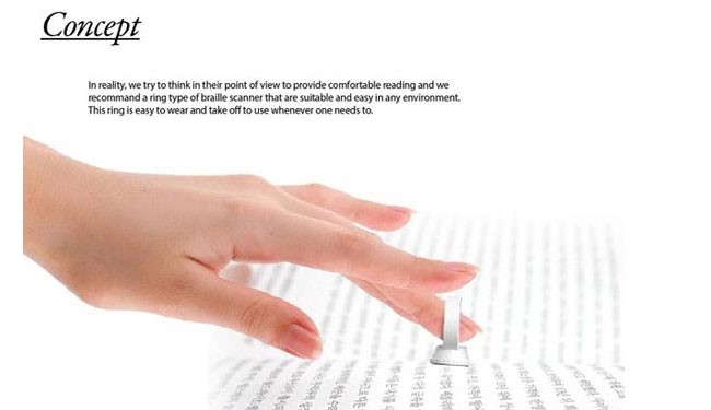 "یونگ جیونگ" طراح کره ای است که به تازگی یک انگشتر بسیار جالب و کاربردی برای نابینایان طراحی کرده است که می تواند علم و سطح آموزش را میان این افراد به طرز قابل توجهی رشد دهد.