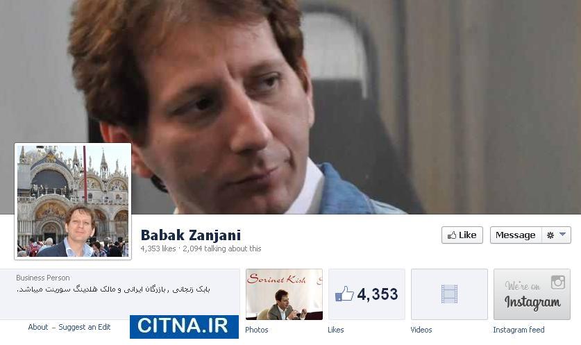 صفحه فیس بوک منتسب به بابک زنجانی میلیاردر ایرانی در حال حاضر بیش از 4 هزار و 300 لایک دارد.