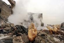 دست یک مانکن که متعلق به مغازه های پوشاک ساختمان پلاسکو بوده هنگام آوار برداری از زیر آوار بیرون آمده و سوژه عکس عکاسان شد.