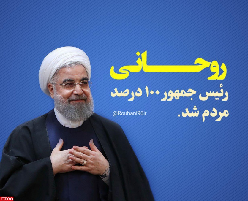کانال تلگرامی ستاد حسن روحانی، با انتشار عکسی از رئیس جمهور منتخب ایران، نوشت: "روحانی رئیس جمهور 100 درصد مردم شد".
