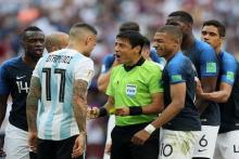به گزارش ایسنا، فرانسه در نخستین دیدار مرحله یک هشتم نهایی توانست در دیداری که علیرضا فغانی داور ایرانی قاضی آن بود، با نتیجه ۴ بر ۳ آرژانتین را شکست دهد. گل نخست خروسها با خطای پنالتی که فغانی اعلام کرد به ثمر رسید.