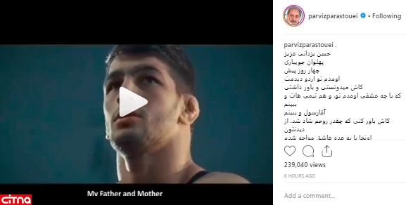 به گزارش سرویس وبگردی سیتنا، پرویز پرستویی در اینستاگرام نوشت: «حسن یزدانی عزیز پهلوان جویباری چهار روز پیش اومدم تو اردو دیدمت. کاش میدونستی و باور داشتی که با چه عشقی اومدم تو، و هم تیمی هات و ببینم آقارسول و ببینم کاش باور کنی که چقدر روحم شاد شد، از دیدنتون اونجا با یه عده عاشق مواجه شدم.