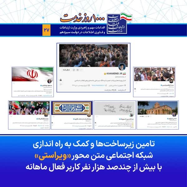 ویراستی مصداق حمایت از سکوهای بومی است. تامین زیرساخت های لازم برای راهاندازی ویراستی از اقدامات وزارتخانه است. تلاش شد اعضای دولت و مدیران ارشد حضور فعال داشته باشند. امیدوارم سکوهای ایرانی به اولین انتخاب مسئولین برای ارتباط با مردم تبدیل شود، از تیم خوش فکر و تلاشگر ویراستی متشکرم.