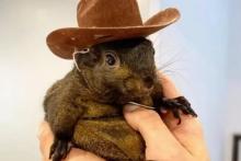 لانگو میگوید هفت سال پیش این سنجاب را که مادرش در اثر تصادف با خودرو مرده بود نجات داده و نامش را بادامزمینی گذاشت.